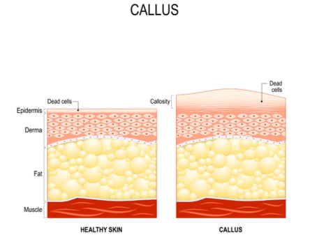 Calluses are hard, thickened areas of skin that form as the result of rubbing or pressure on the skin.