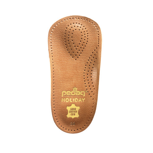 The Pedag® HOLIDAY® is a thin, effective orthotic will properly fit in almost any shoe. The insole adds classic comfort and support while reducing foot fatigue. Effective for walking, running, sports, and for long periods of standing time on hard surfaces. The support of the anatomically shaped insert contains a semi-rigid footbed with a diagonal bridge function designed to stabilize, align, and support the midfoot. The metatarsal cushion provides extra support and relieves pain and pressure in the forefoot.